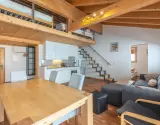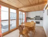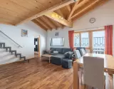 1 Schlafzimmer mit 1 Doppelbett, auf der Galerie befinden sich 3 weitere Betten, 1 Wohnraum mit 1 Küchenabteil mit Wohnecke, 1 Dusche/WC, Sat-TV, Balkon.