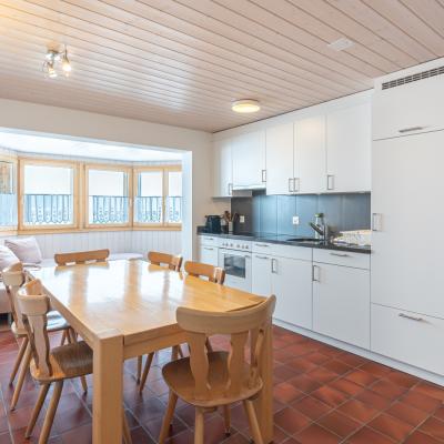 Unsere zweckmässig ausgestattete Küche ist der perfekte Ort, um köstliche Familienmahlzeiten zuzubereiten. Genießen Sie die Geselligkeit des Esstisches für unvergessliche Abendessen.